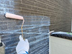今回の施工では、劣化した古いコーキング材をすべて撤去し、新しいコーキングをしっかりと打ち替える予定です。古いコーキングを丁寧に除去しましたので、このあとプライマー塗布していきます。しっかりした下地処理で新しいコーキングが密着し、長持ちさせることができます。